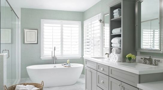 Place greenery on counters or the tub area to create the feeling of warmth and relaxation.